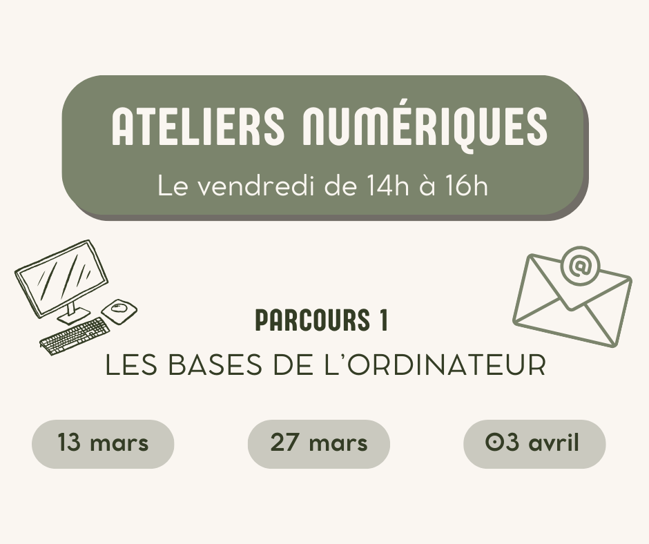 En petit groupe, venez apprendre les bases de l'ordinateur, de la navigation sur internet et de l'utilisation de la boite mail. N'hésitez pas à partager l'information autour de vous !