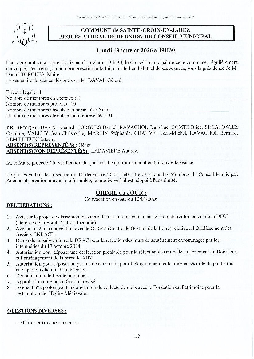 Procès-Verbal du Conseil Municipal du 19 janvier 2026