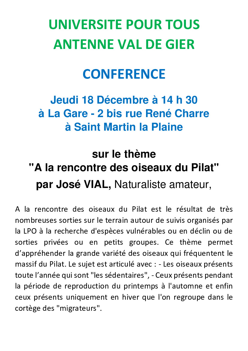 UNIVERSITE POUR TOUS - CONFERENCE