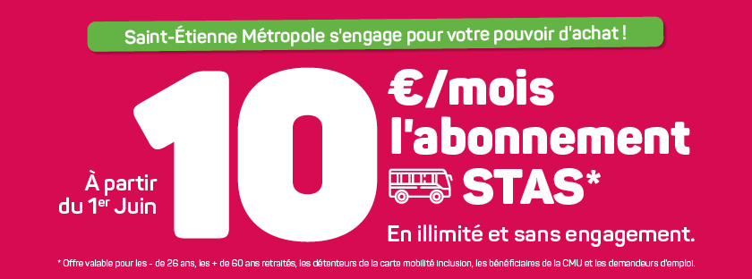 Vos élus de Saint-Etienne Métropole ont décidé d'une baisse importante des tarifs de l'abonnement STAS, pour toutes les générations, dès le 1er juin.