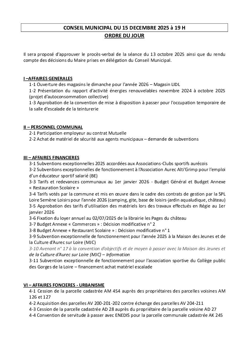 🔴 Ordre du jour du Conseil municipal - 15/12/2025