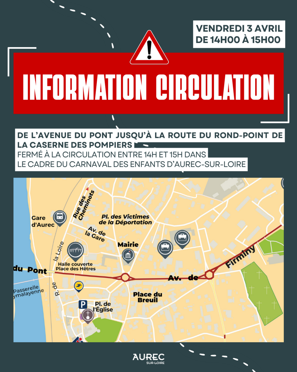 🚧🎭 Rappel circulation – Carnaval des enfants d'Aurec-sur-L