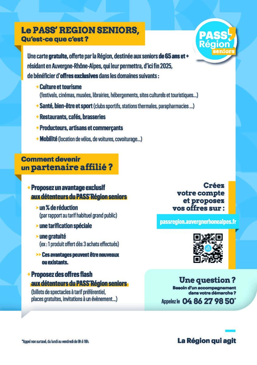 La Région Auvergne-Rhône-Alpes lance le PASS’Région Seniors, un nouveau dispositif pensé pour favoriser le bien-vieillir en offrant aux seniors des avantages exclusifs pour leurs sorties culturelles 🎭, leurs courses du quotidien 🛒 ou encore leurs activités associatives.