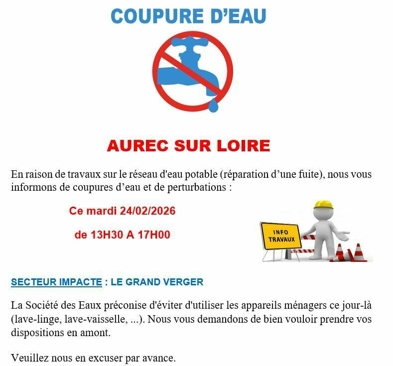La Société des Eaux entre Loire et Lignon nous informe que des travaux sur le réseau d’eau potable (réparation d’une fuite) entraîneront une coupure d’eau :
