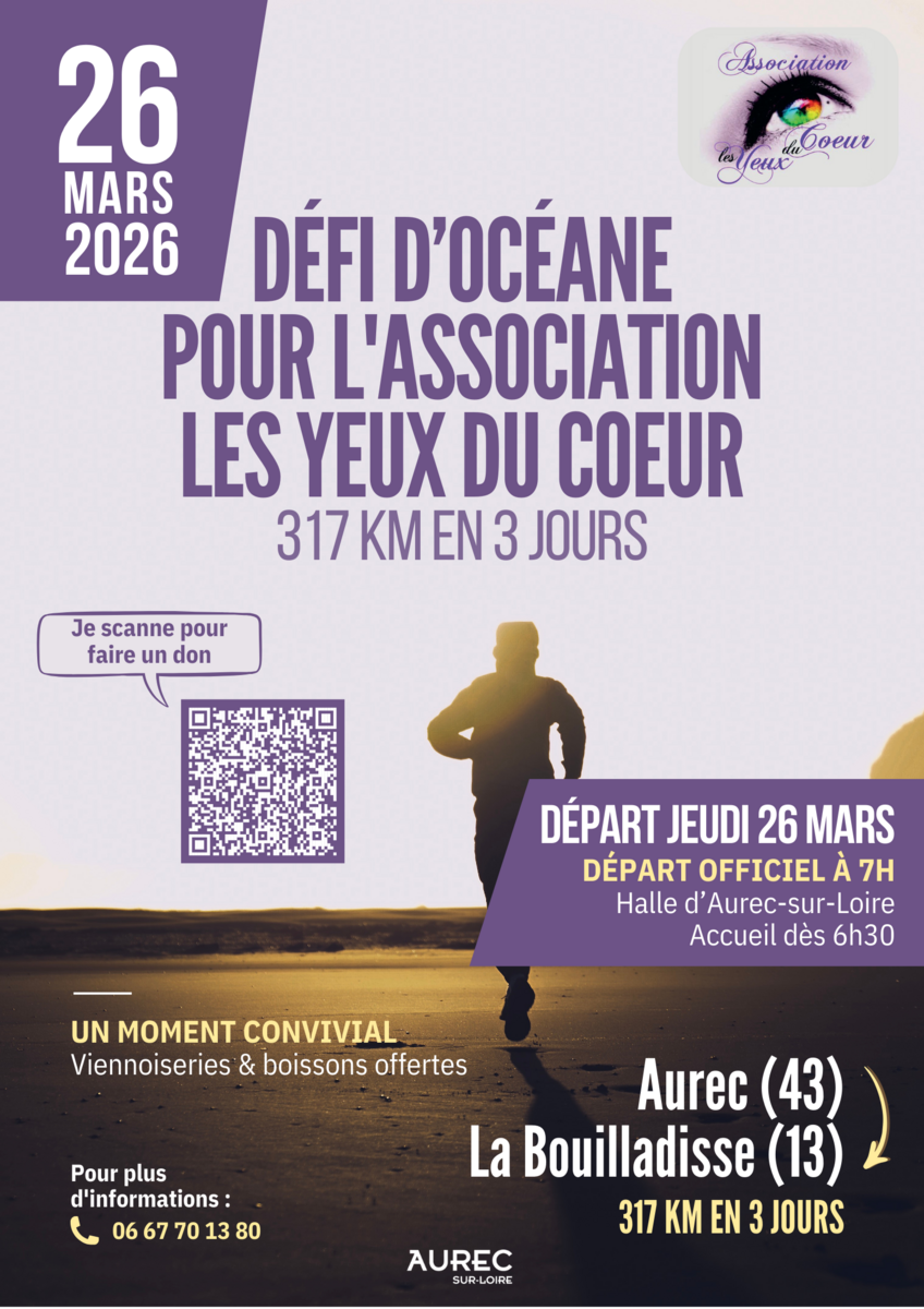 Votre mairie / Agenda / 🏃‍♀️💜 Défi d’Océane pour l’association Les Yeux du Cœur 💜🏃‍♀️