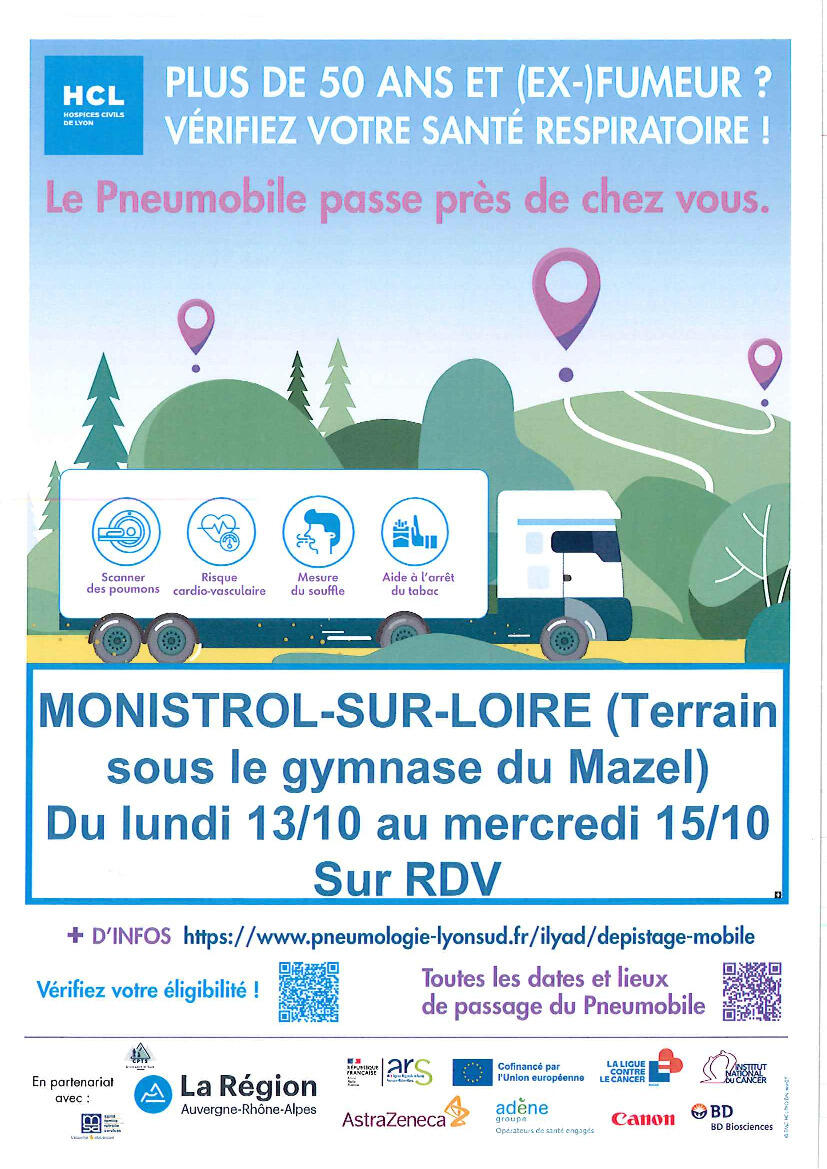 Les hospices civils de Lyon en partenariat avec la CPTS Entre Loire et Sucs mettent en place le passage d'un "Pneumobile" proche de votre commune.