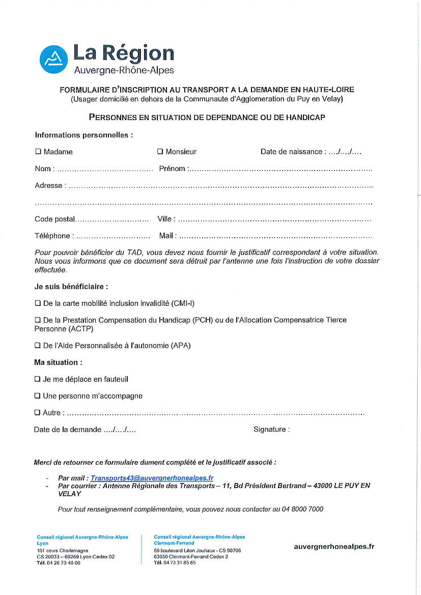 Depuis le 1er février la région a pris la compétence du TAD des personnes en situation de handicap (APA, PCH, CMI-I, ACTP).