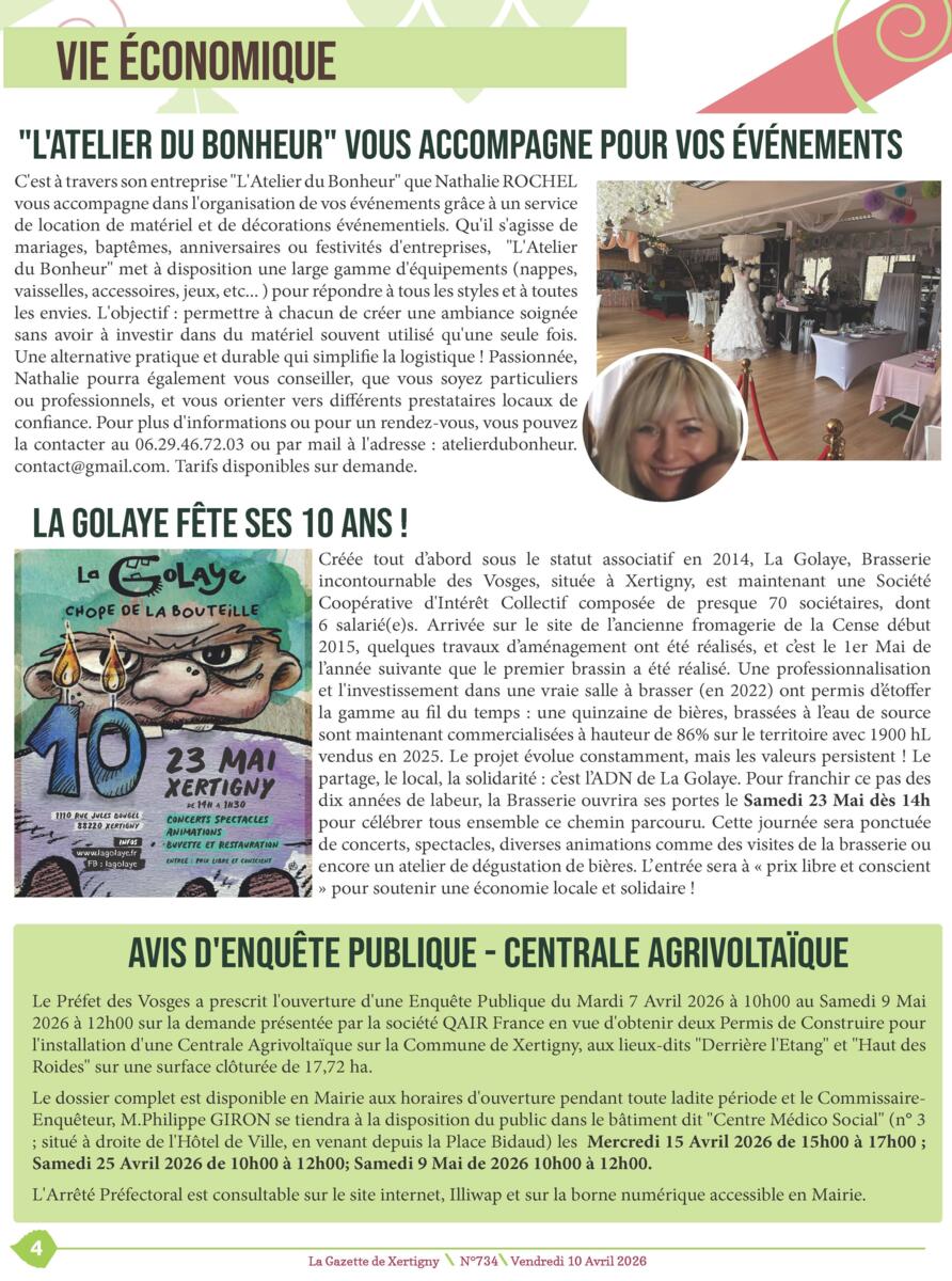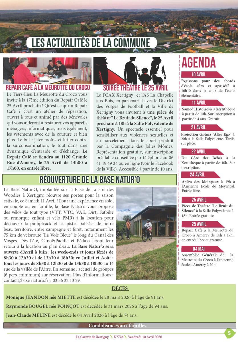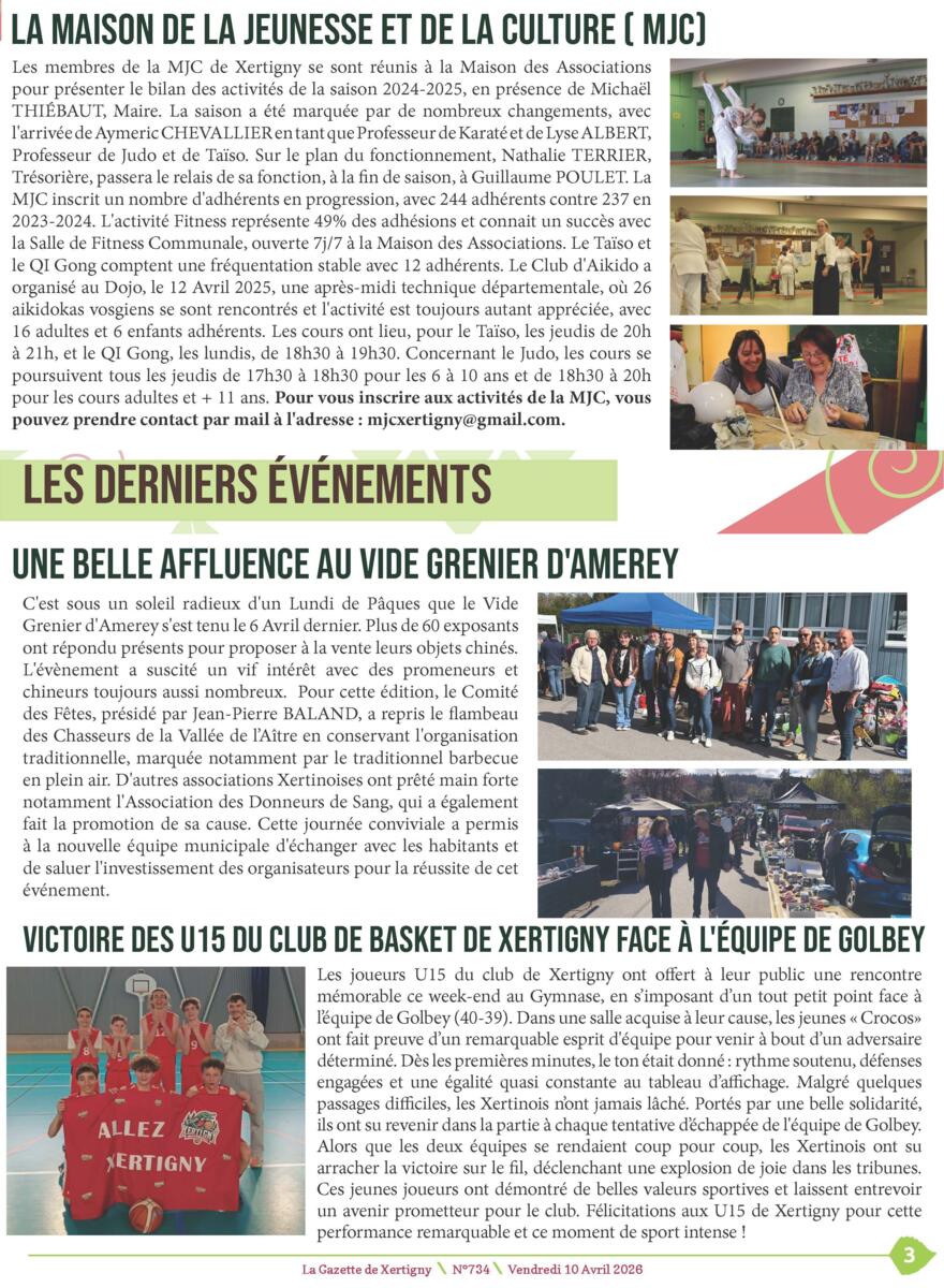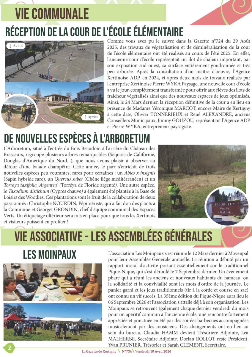 Sur cette 734ème gazette, vous pourrez y lire le 1er édito de Michaël THIEBAUT, Maire de Xertigny, des articles concernant la vie communale avec la restitution de la cour de l'école élémentaire, les assemblée générales et bien d'autres sujets. 🌻