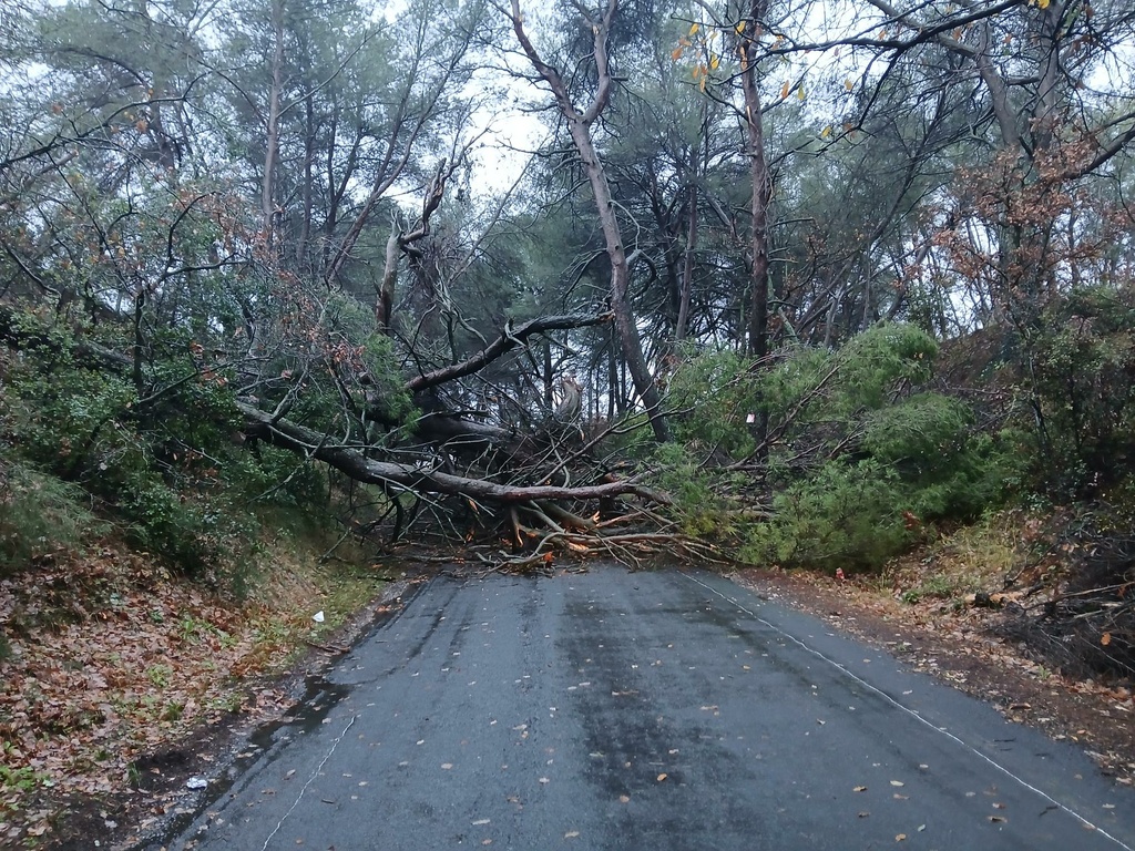Arbre couché voie verte direction boujan / route bloquée 19/01/2026 Arbre couché bloquant la traverse de Boujan / Voie Verte