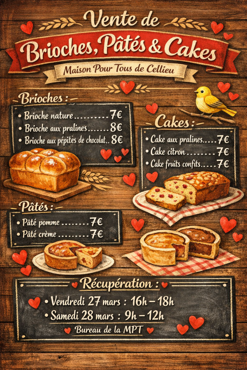 La MPT vous propose se traditionnelle vente de brioches, cakes, pâtés en partenariat avec le Boulanger de St Paul en Jarez