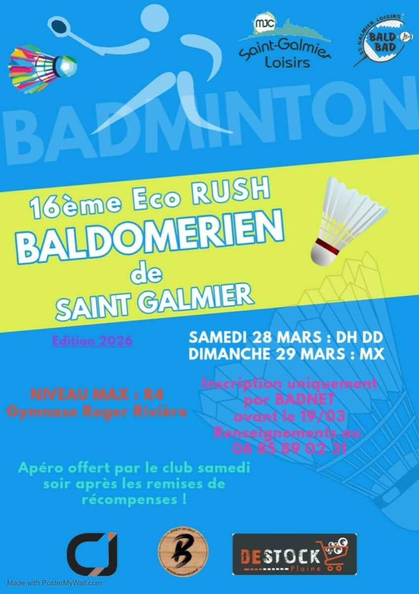 Votre mairie / Actualités / 16ème éco-rush baldomérien (badminton) les 28 et 29/03