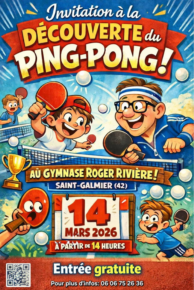 Envie de taper la balle ? Venez profiter librement de 16 tables mises à disposition pour une grande après-midi conviviale autour du tennis de table ! Que vous soyez seul, entre amis ou en famille, venez jouer, échanger et rencontrer les passionnés de St-Galmier.