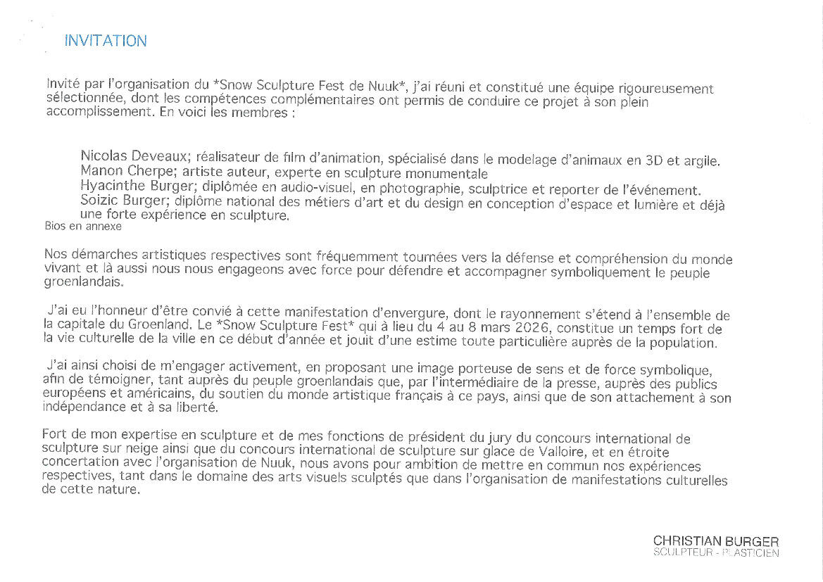 Dans le cadre du NUUK SNOW FEST Christian Burger, Directeur artistique des sculptures de Valloire est invité au Groenland au sujet du "SOUTIEN AU GROENLAND" en ce moment.