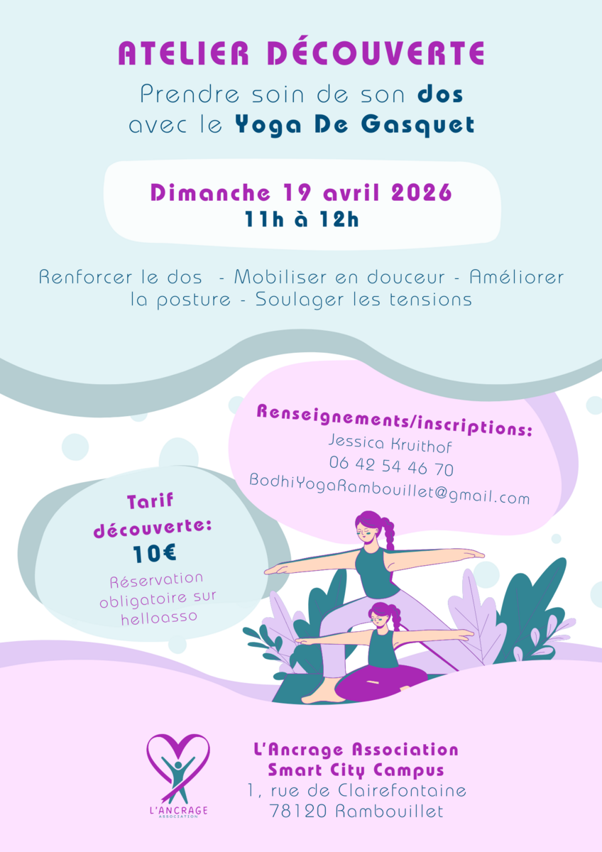19 avr. 2026 11:00 - 12:00 19 AVRIL - Atelier de Yoga De Gasquet pour prendre soin de son dos Voir plus