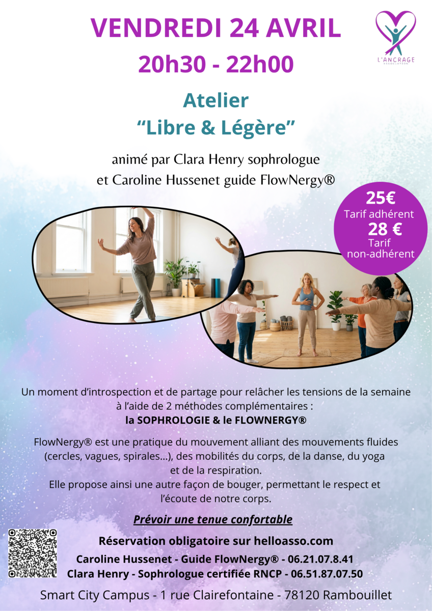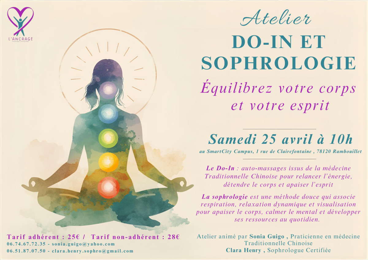 25 avr. 2026 10:00 - 11:45 25 AVRIL - Atelier DO-IN ET SOPHROLOGIE Équilibrez votre corps et votre esprit Voir plus