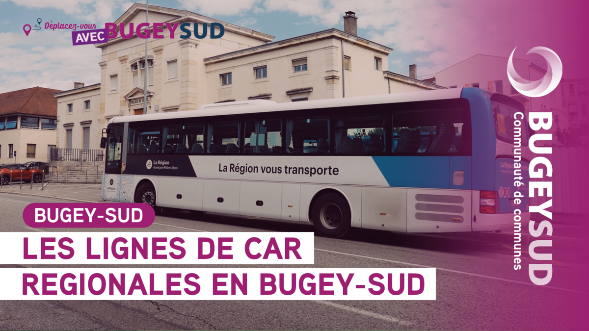 La Région Auvergne Rhône-Alpes propose 5 lignes de car, ouvertes à tous, desservant le territoire Bugey-Sud :
