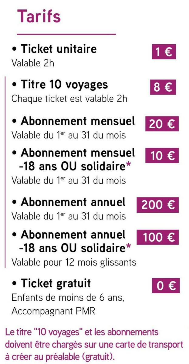 • Création d'un tarif -18 ans pour les abonnements mensuels et annuels (équivalent au tarif solidaire).