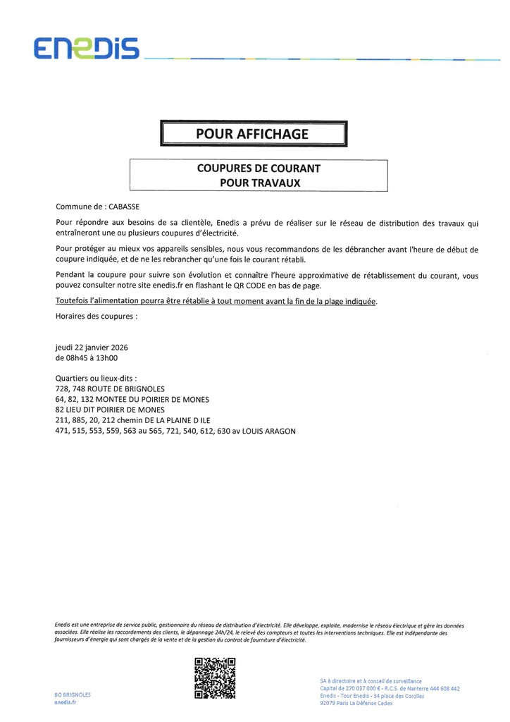 / Information ENEDIS- coupure de courant
