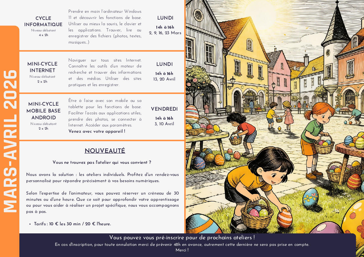 🔹 Cycle Informatique (Windows 11) : Les lundis de mars.