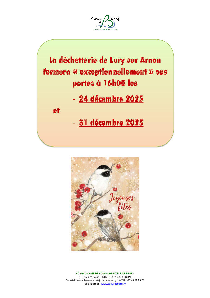 FERMETURE EXCEPTIONNELLE DE LA DECHETTERIE DE LURY/ARNON
