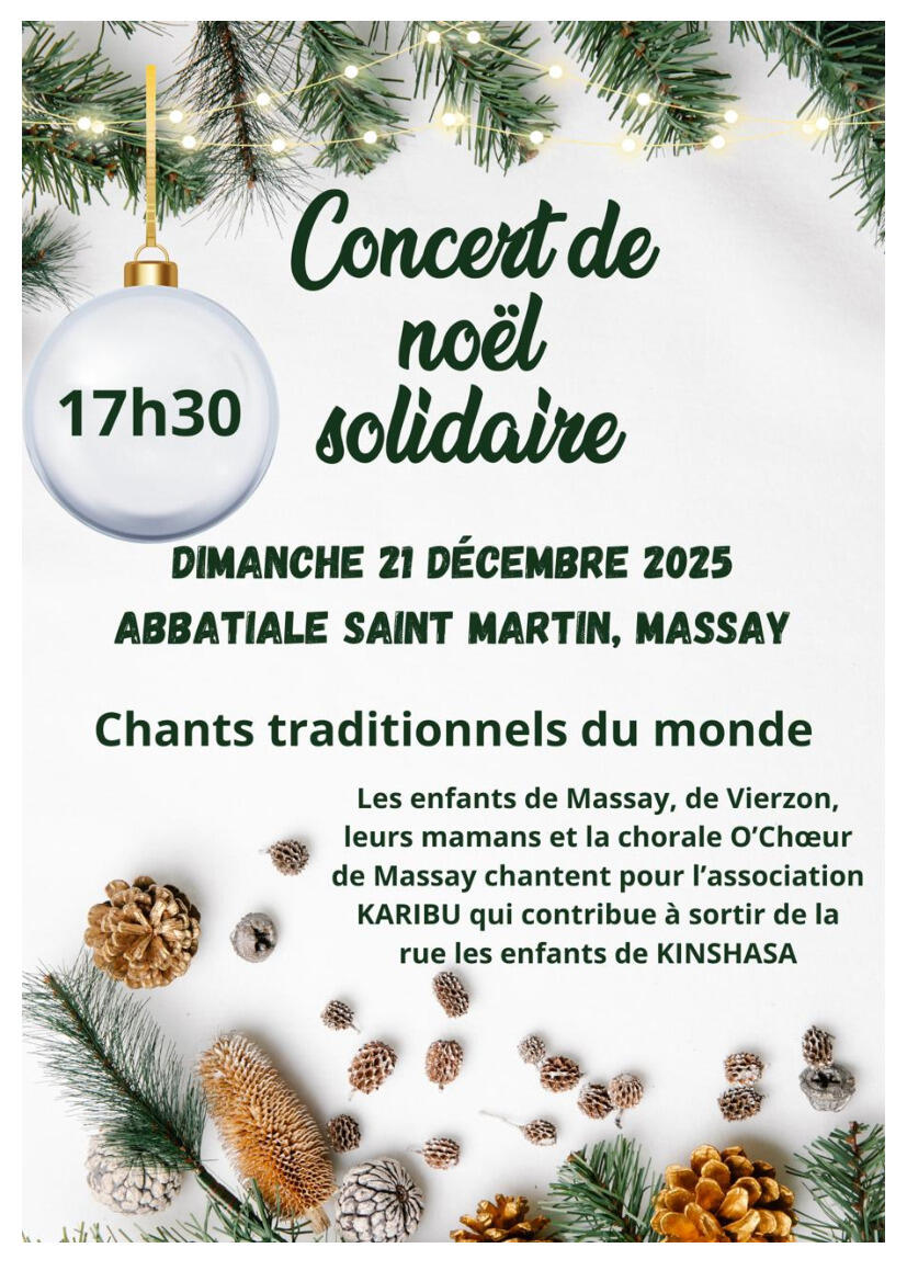 DIMANCHE 21 DECEMBRE : CONCERT DE NOËL SOLIDAIRE à MASSAY