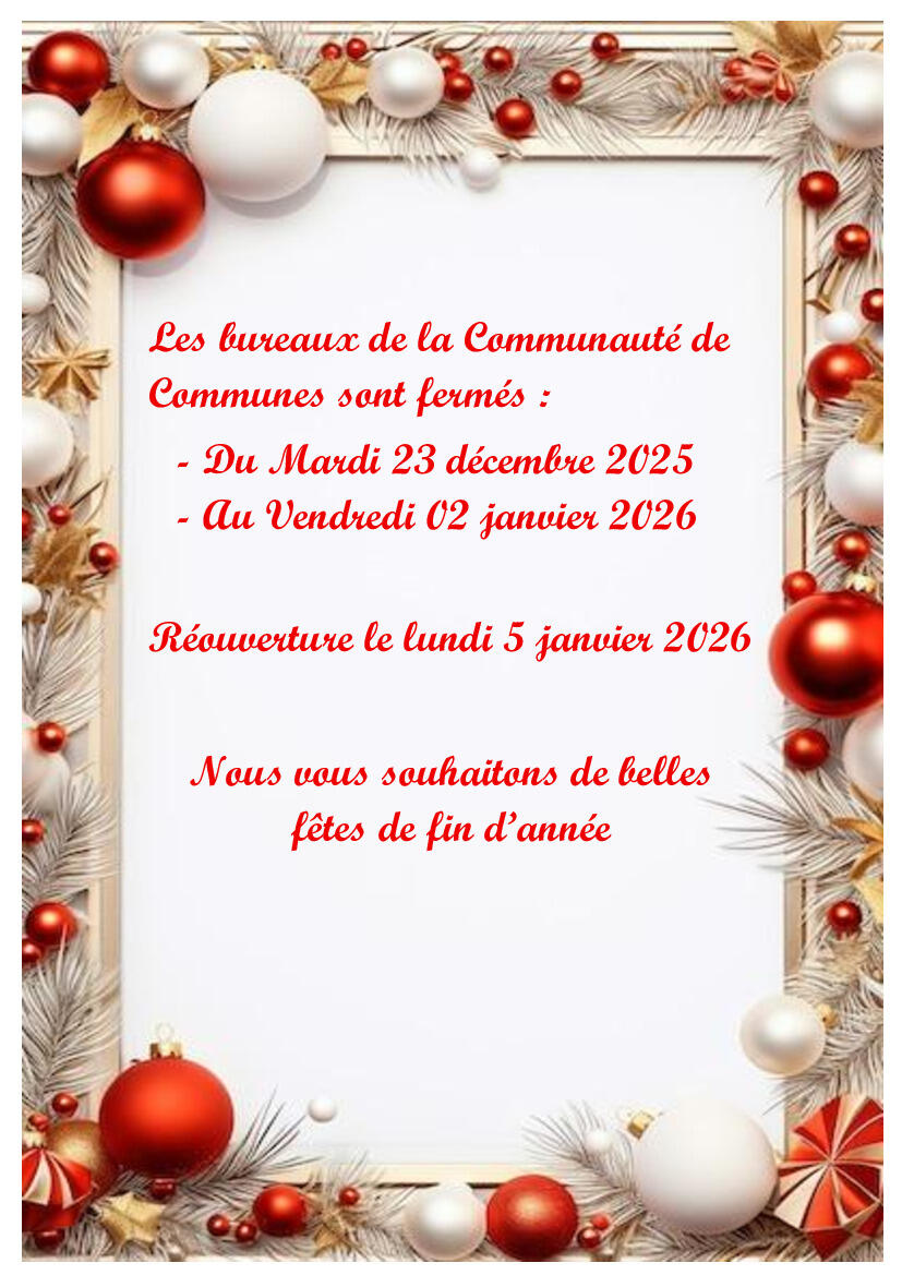 Fermeture des bureaux de la Communauté de Communes