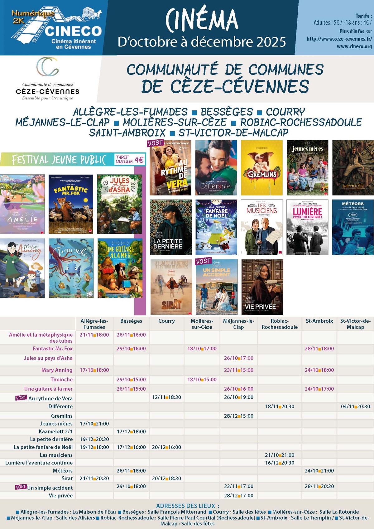 Retrouvez le programme de votre cinéma itinérant pour le prochain trimestre