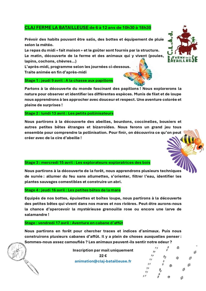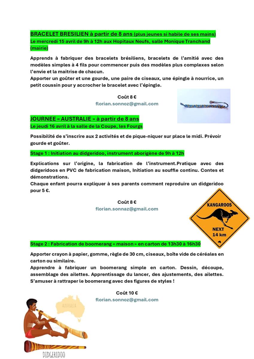 Découvrez toutes les activités proposées pour les prochaines vacances et n'oubliez pas de joindre l'autorisation parentale lors de l'inscription de vos enfants (téléchargeable sur notre site internet).
