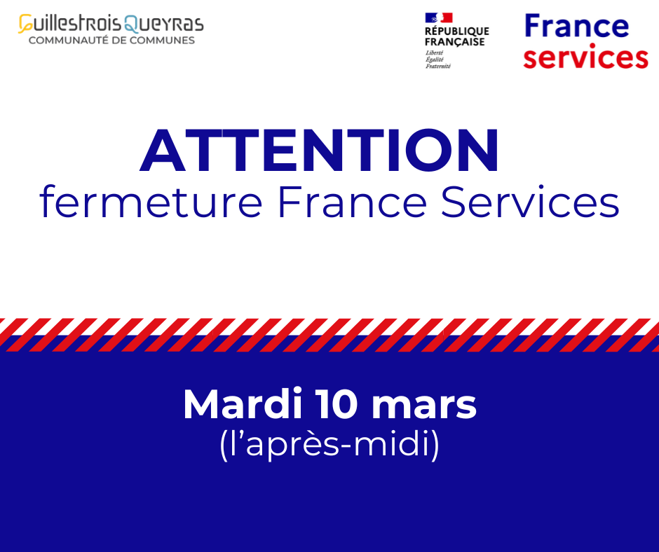 ⛔ Fermeture France Services le mardi 10 mars (l'après-midi)
