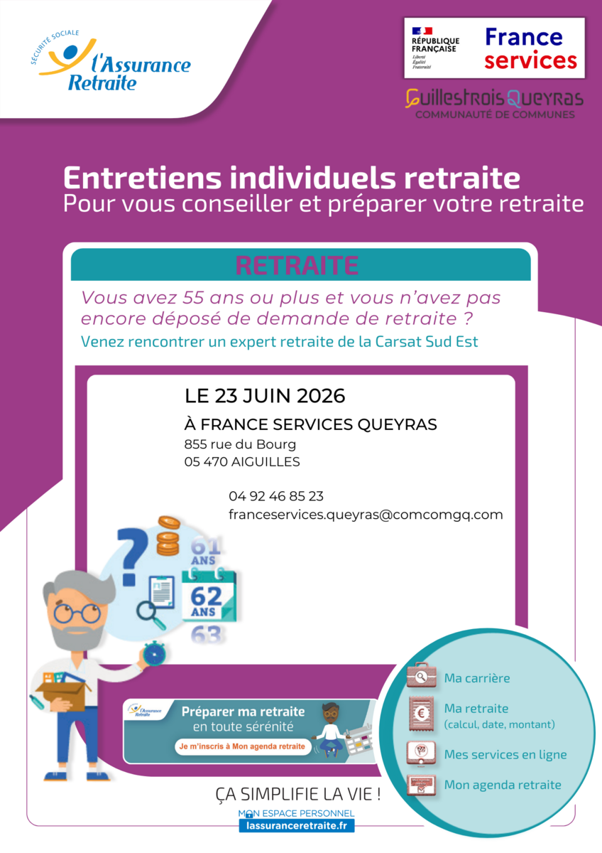 Permanence CARSAT (retraite) le mardi 23 juin 2026