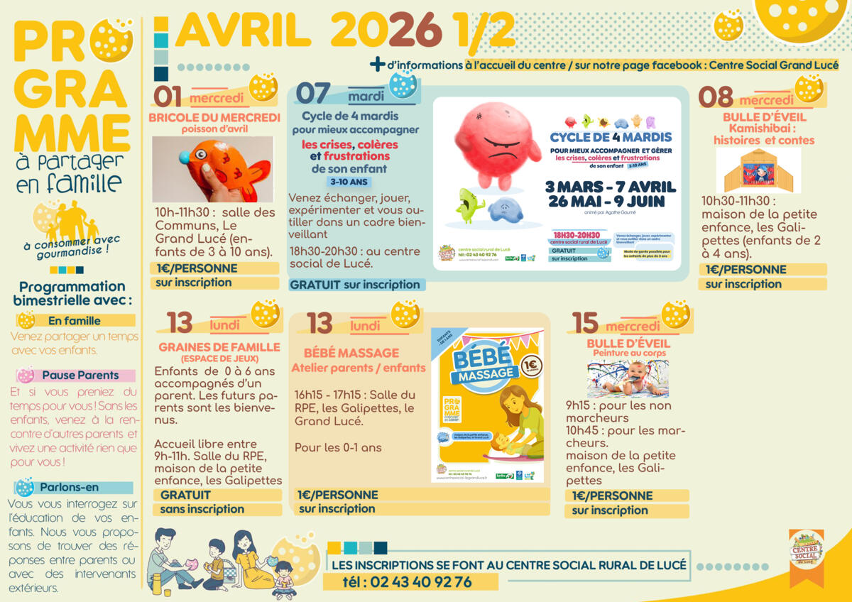 Programme "à partager en famille" mars/avril avec :