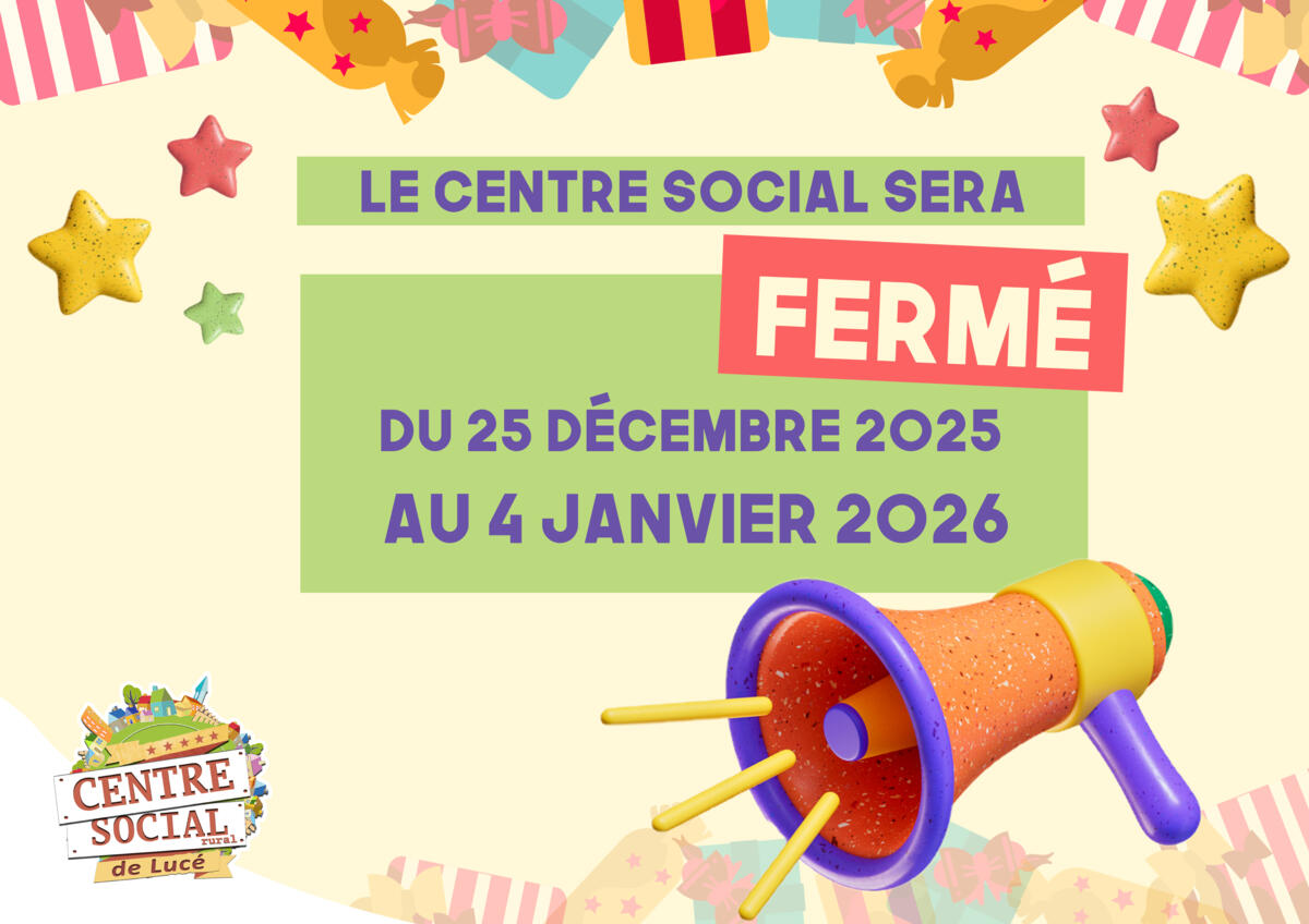 fermeture exceptionnelles pour les fêtes 08/12/2025 Le centre sera fermé du 25 décembre 2025 au 4 janvier 2026.