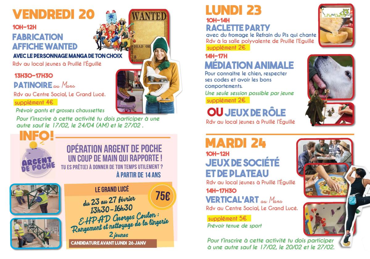 Programme des vacances de février pour les 11 - 17 ans. Début des inscriptions à partir du mercredi 21 janvier.
