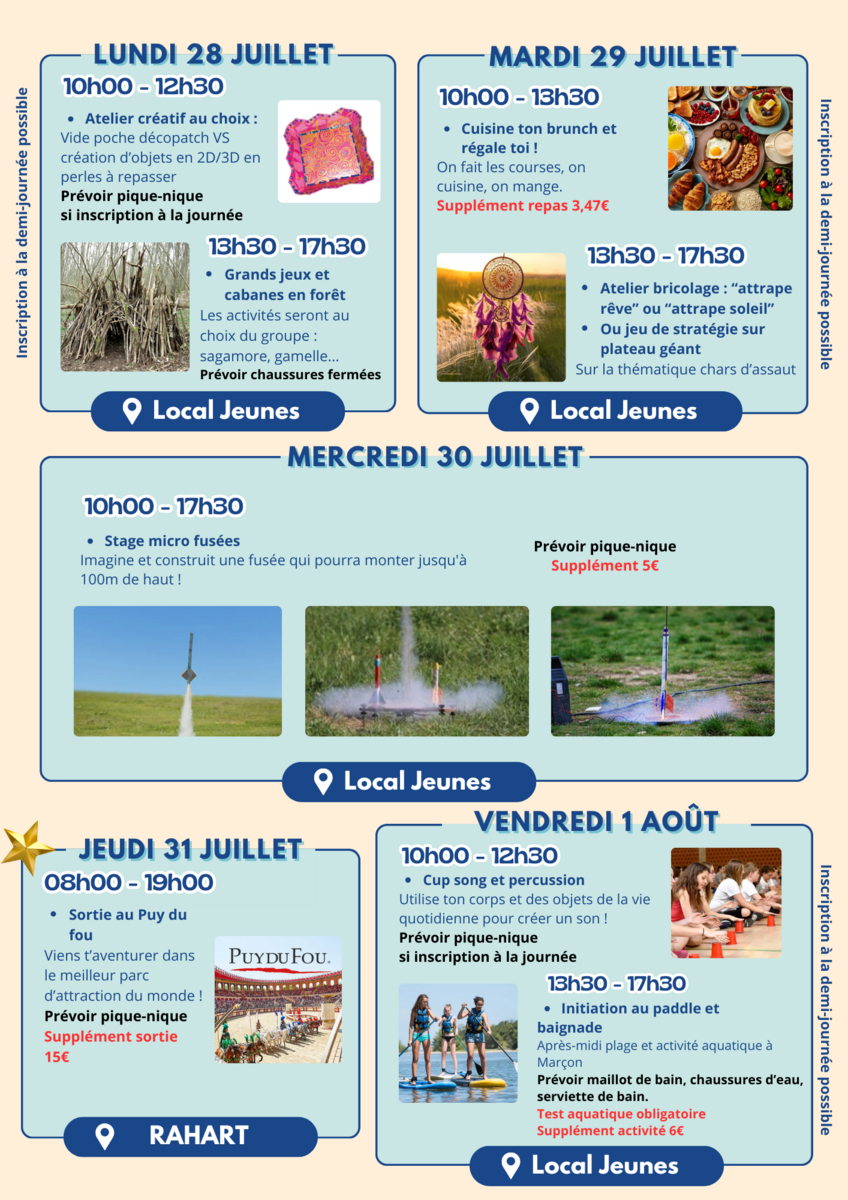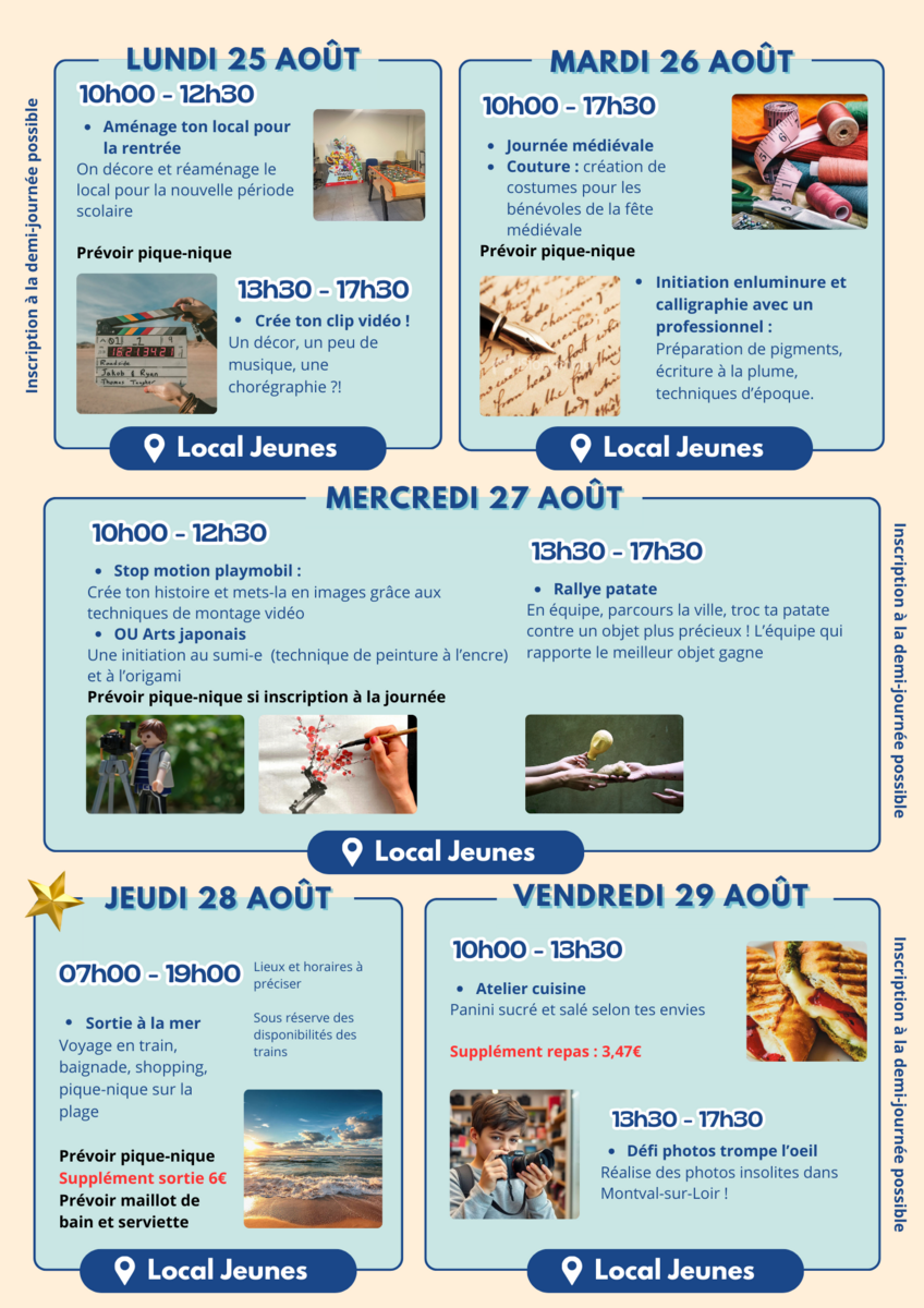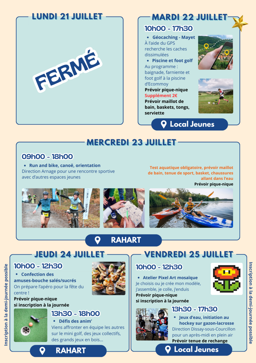 📆Du 7 juillet au 1er août & du 25 au 29 août 2025