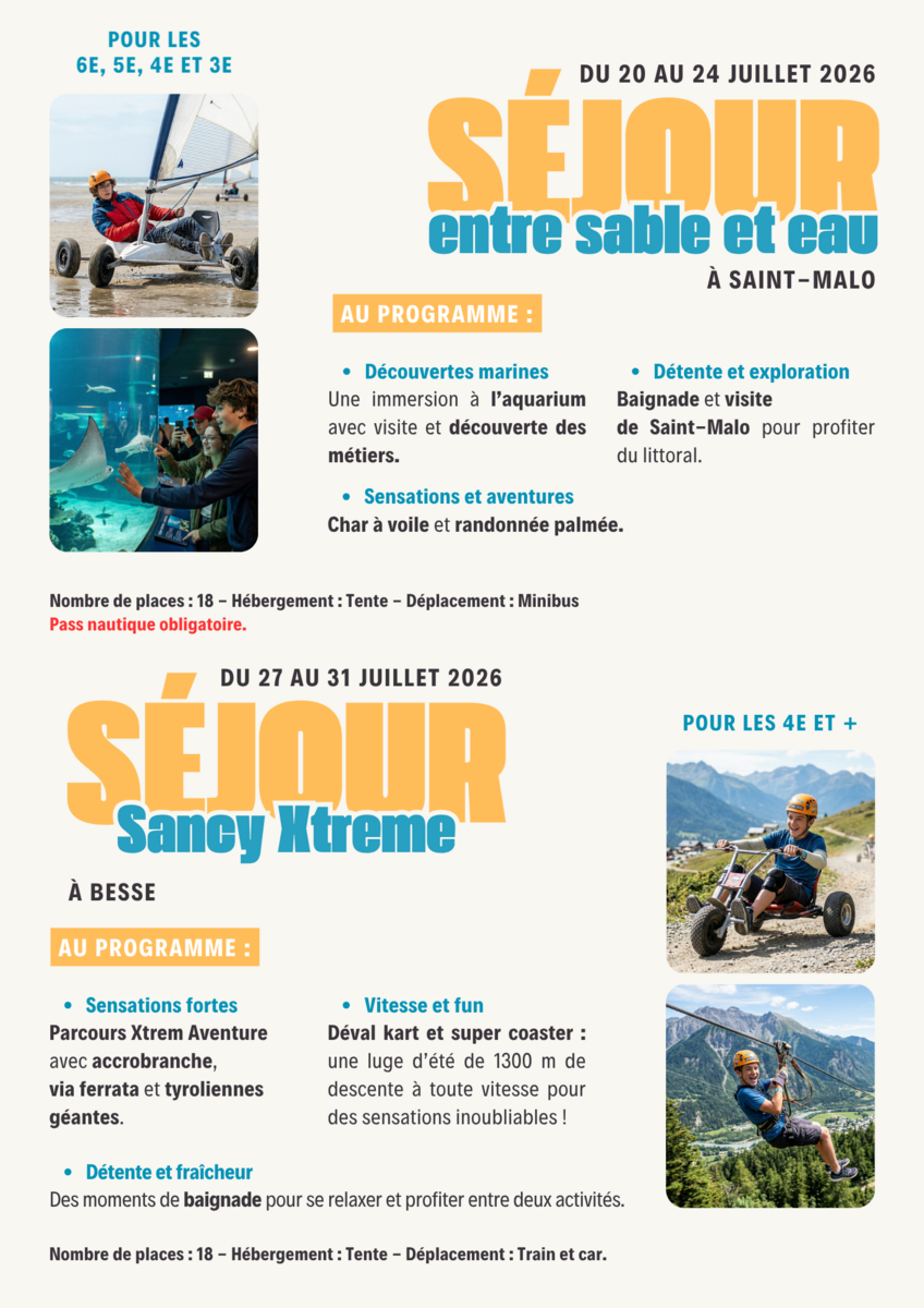 🌞 Les séjours ados 2026 arrivent !