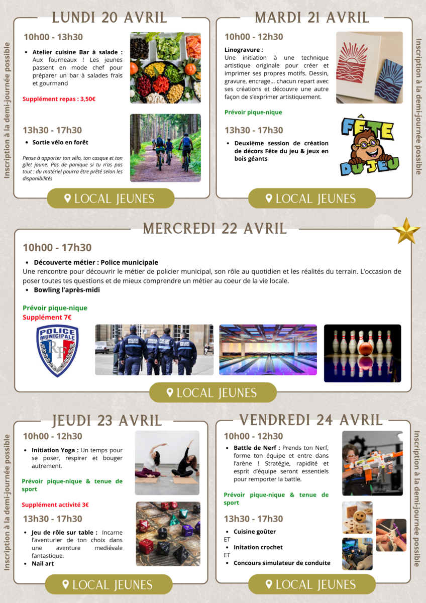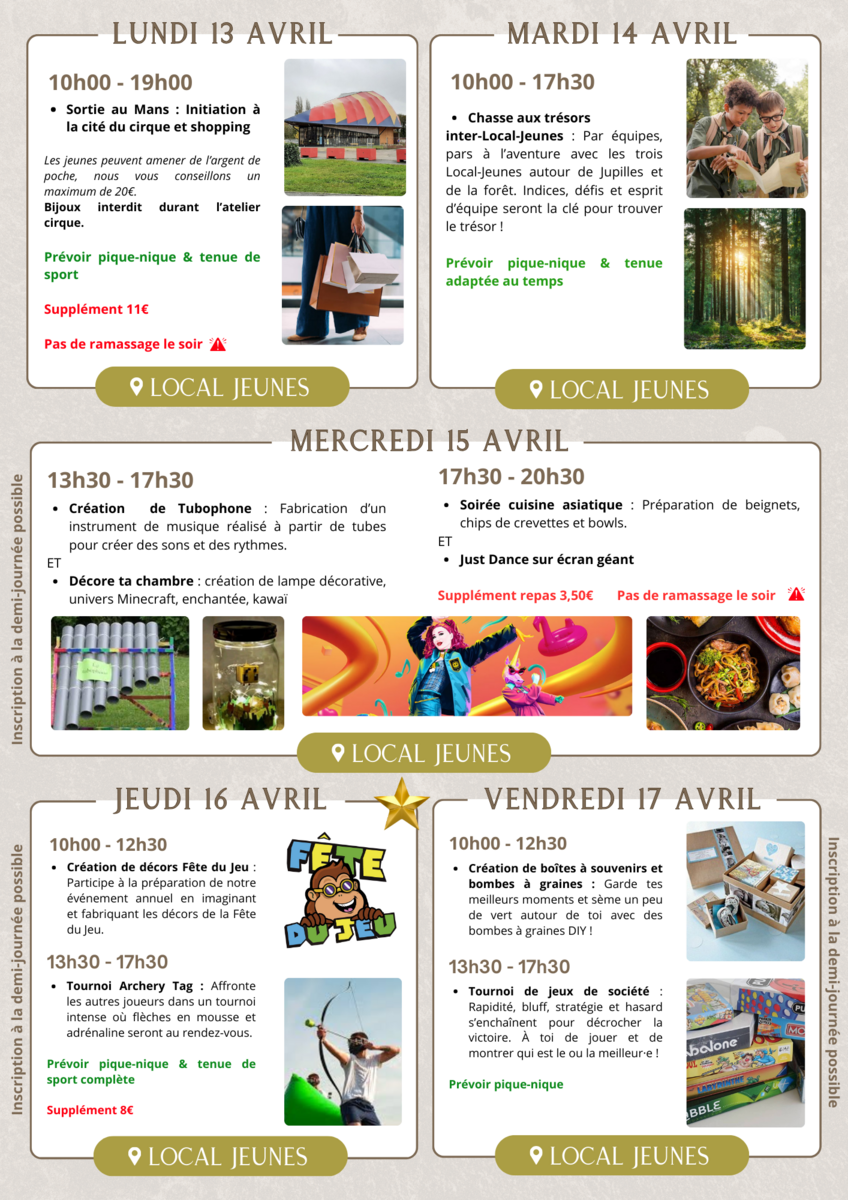 Et voici le programme des vacances d'avril au Local Jeunes ! ⭐️