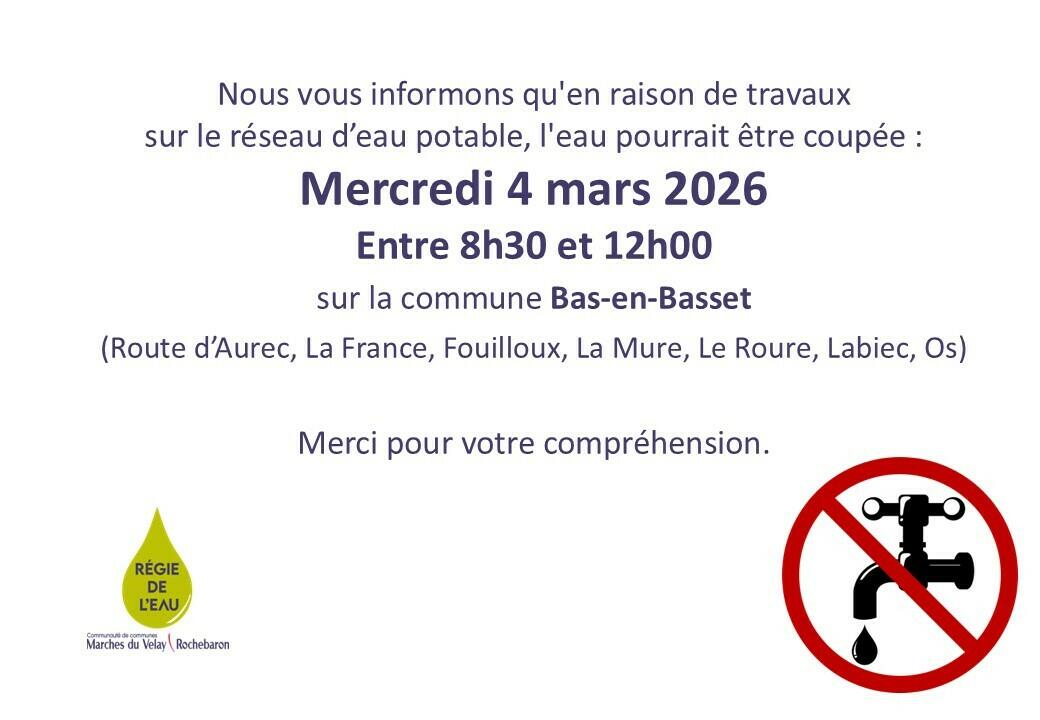 🚱 Coupure d'eau à Bas-en-Basset 🚱