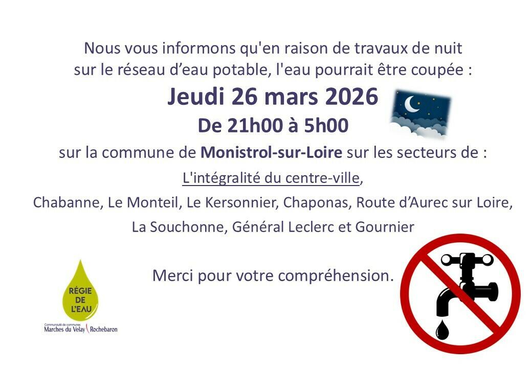 🚱 Coupure d'eau dans le centre-ville de Monistrol-sur-Loire