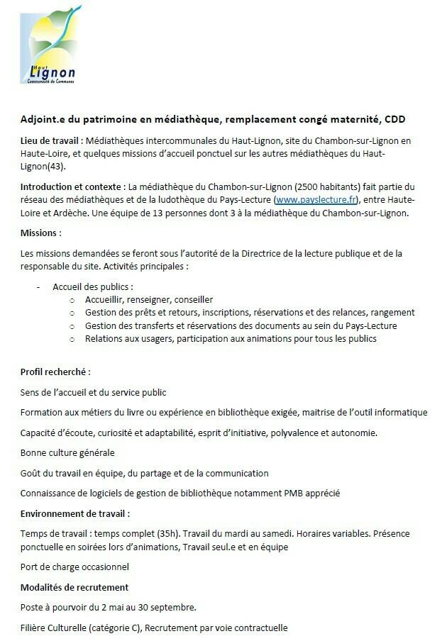 Remplacement | Poste à pourvoir - Médiathèques