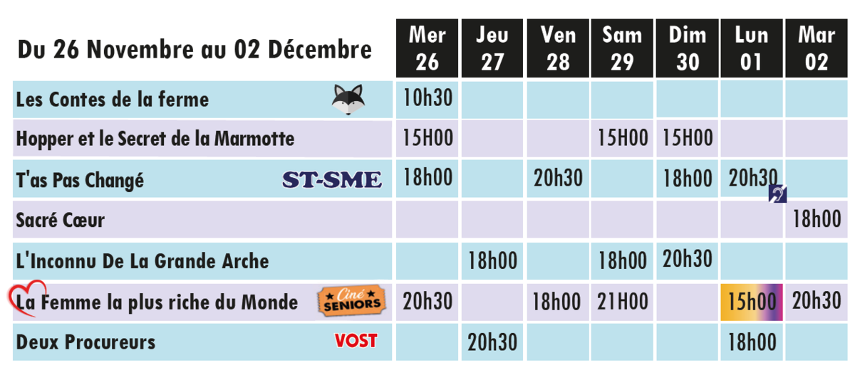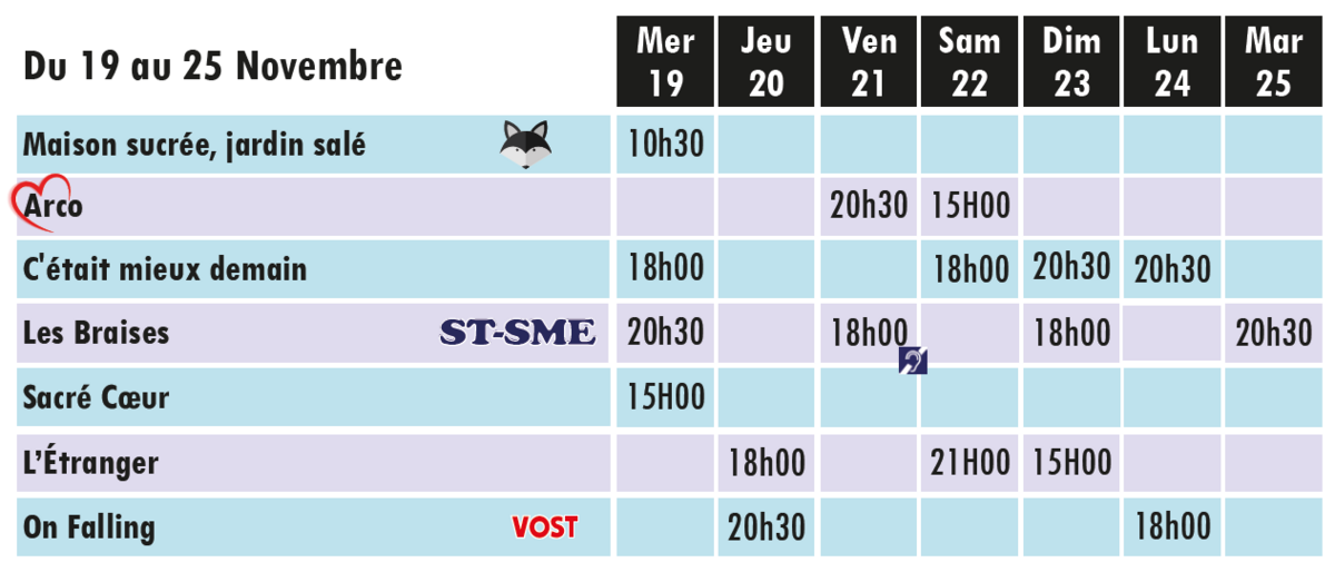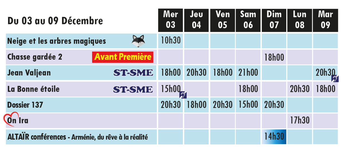 PROGRAMME DU 19 NOVEMBRE AU 09 DECEMBRE 2025