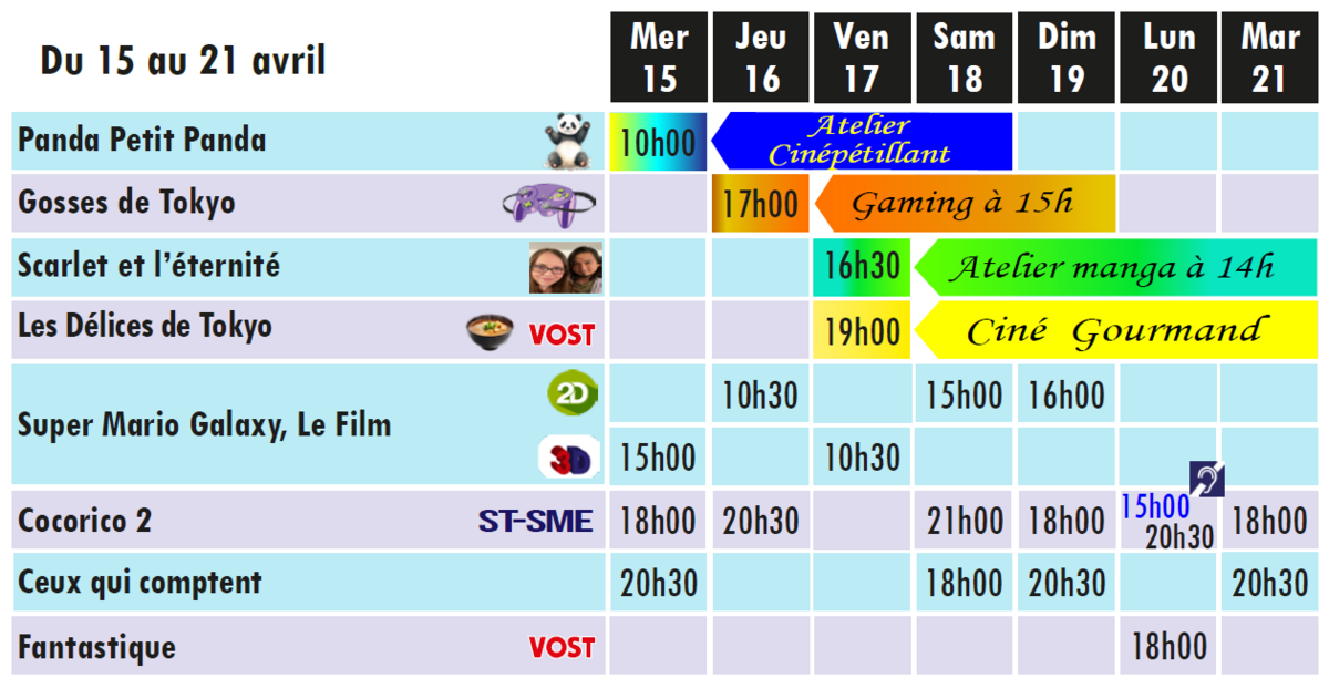 Accueil / Agenda / Programme du 15 au 21 avril 2026