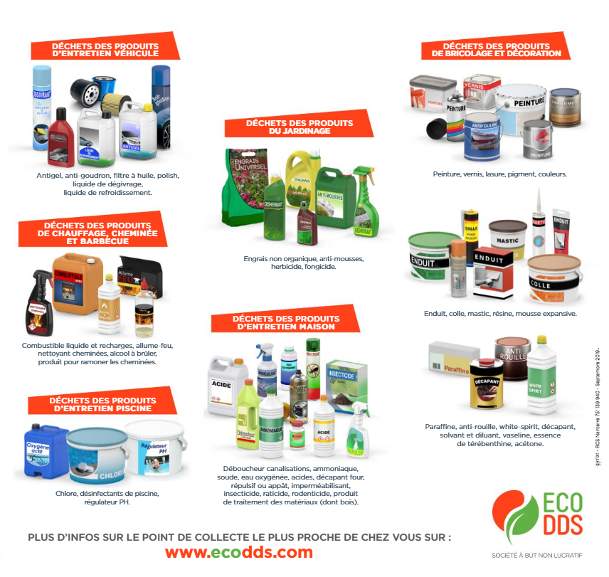 Rappel pratique: déchets chimiques collectés en déchetteries