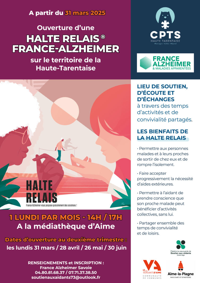 📣 La Halte Relais France-Alzheimer, lieu de soutien, d'écoute et d'échanges pour les familles concernées par cette maladie (ou apparentées), ouvre une fois par mois à la médiathèque d'Aime-la-Plagne !