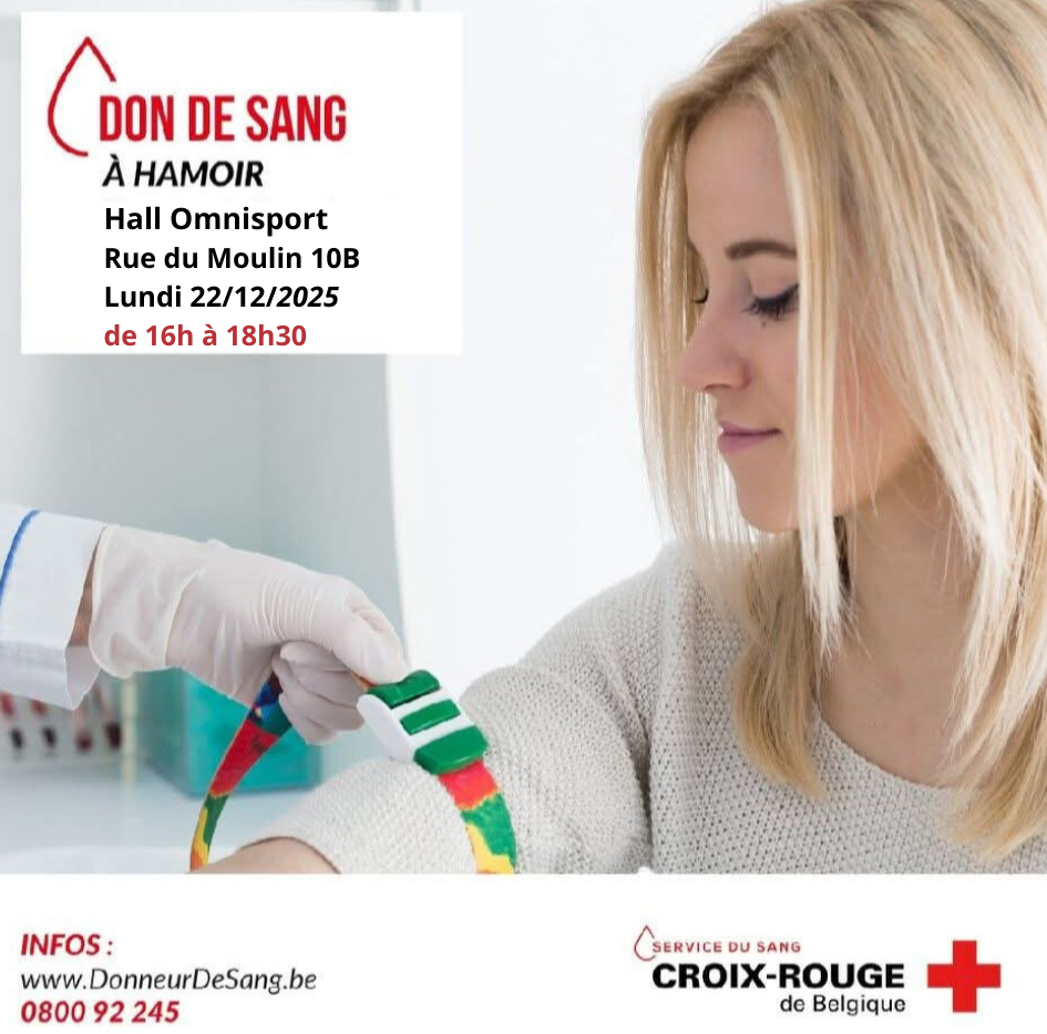 Prochaine date pour le don de sang : 22/12/25 de 16h à 18h30 au Hall Omnisport