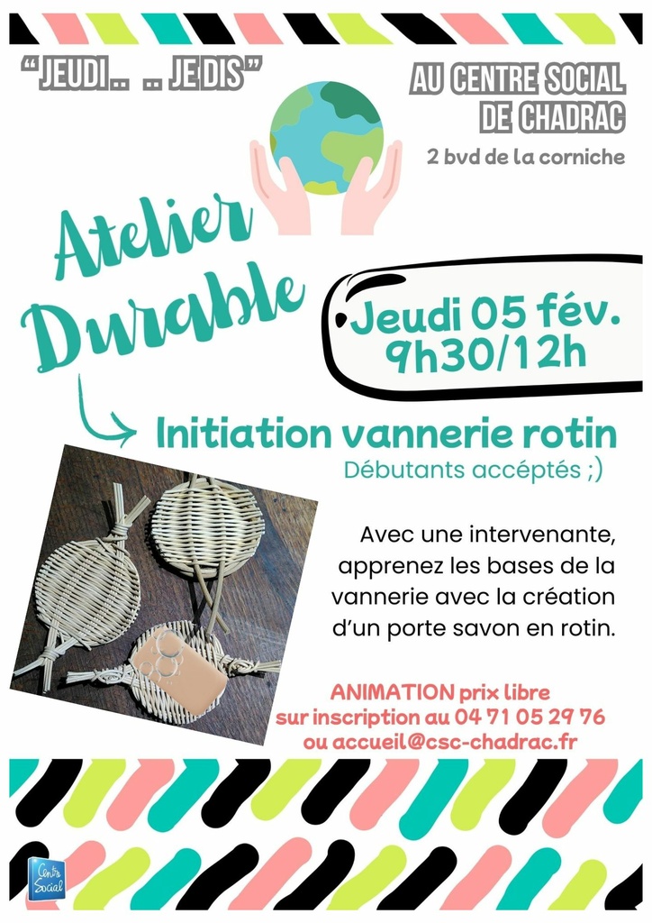 Initiation vannerie / Jeudi 05 février 28/01/2026 Il reste des places pour l'initiation à la vannerie jeudi 5 fev ! Pensez à vous inscrire.