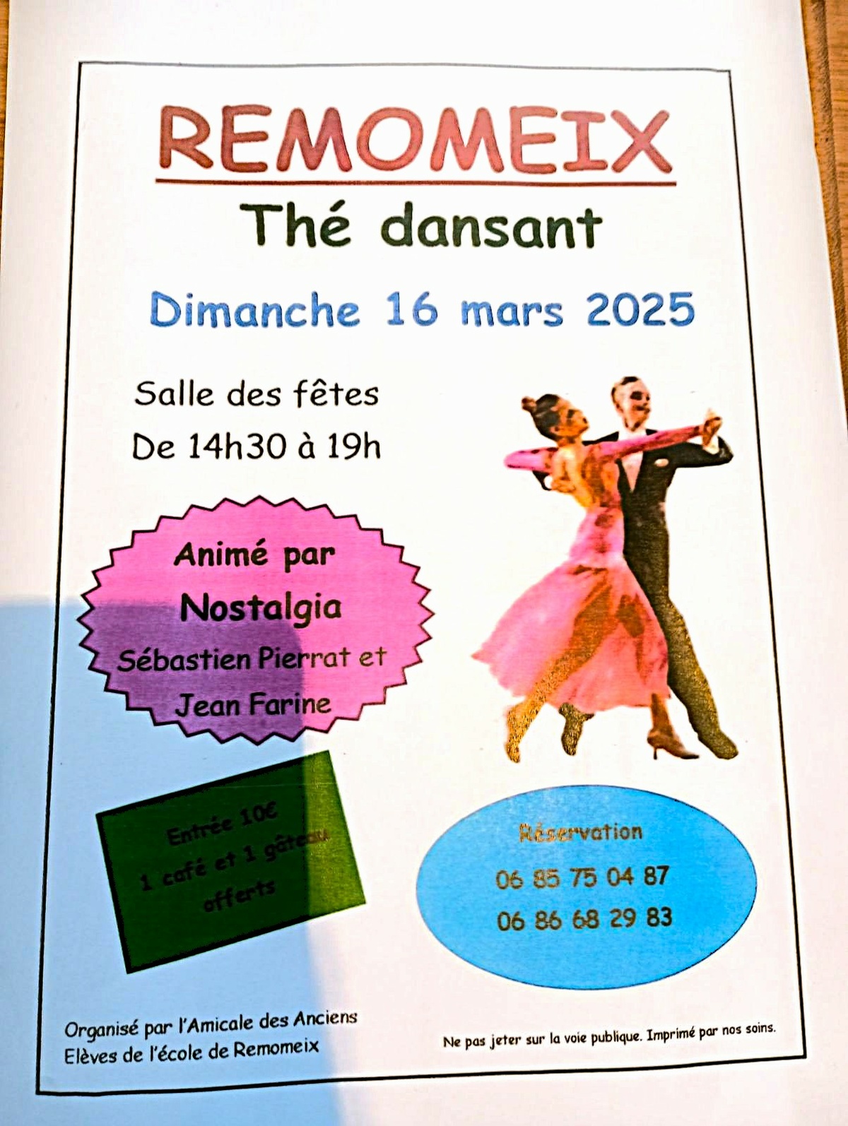 L'AAEER (Amicale des Anciens Élèves de l'École de Remomeix) organise un thé dansant dans la salle des fêtes le dimanche 16 mars de 14h30 à 19h00.