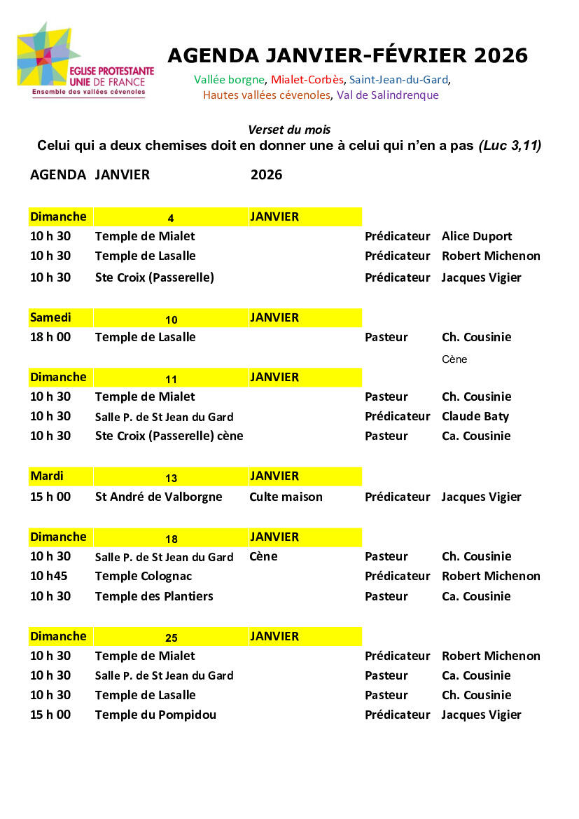 Culte Val de Salindrenque- Colognac dimanche 18 janvier
