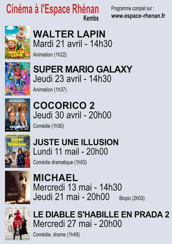 cinema Mardi 21 avril 2026 à 14h30 à l'Espace Rhénan