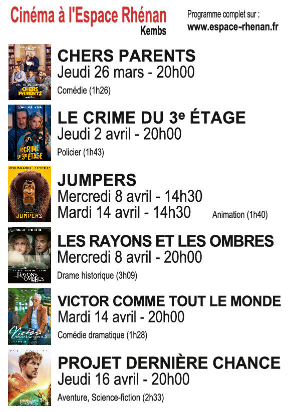 cinema : Mercredi 18 mars 2026 à 14h30 à l'Espace Rhénan