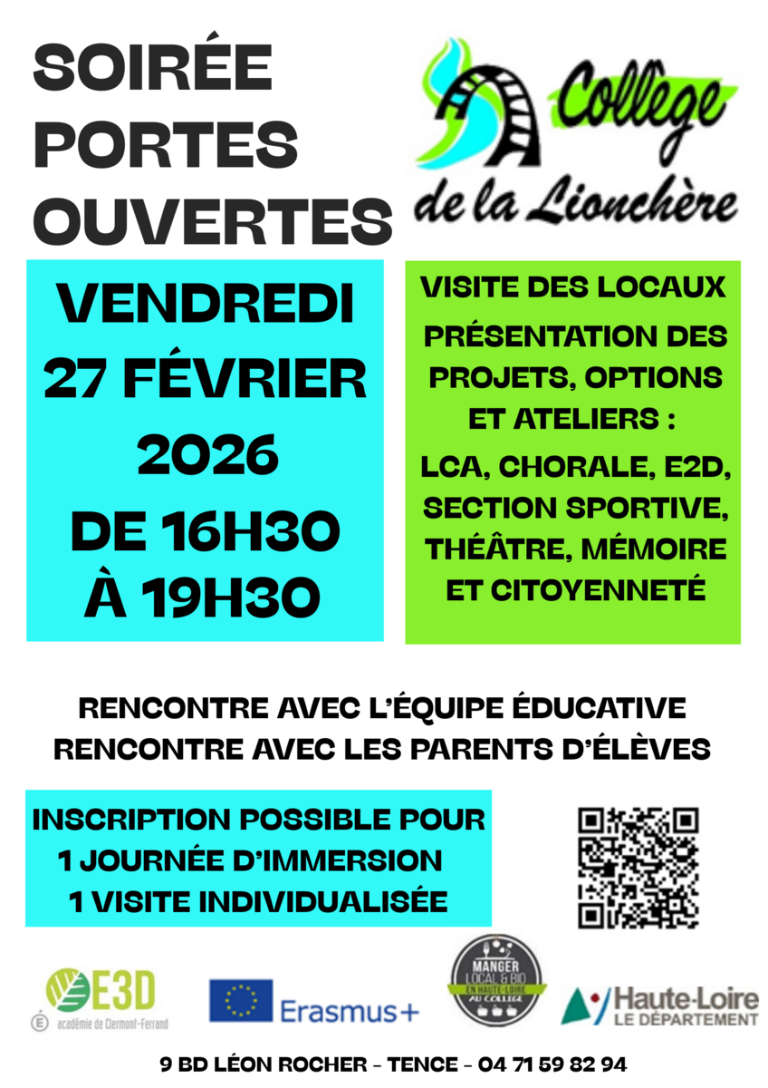 📢 Portes ouvertes au Collège de La Lionchère